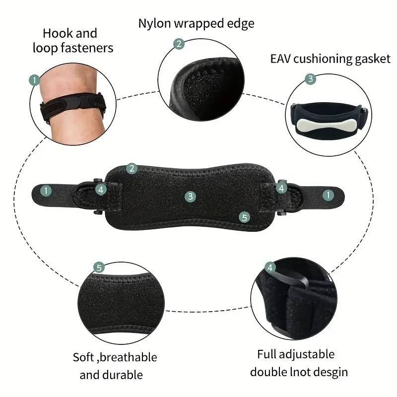 Επιγονατιδική δέστρα σε μαύρο χρώμα η οποία ανυψώνει την επιγονατίδα και ανακουφίζει από τα συμπτώματα πόνου, φλεγμονής και δυσφορίας. Ασκεί πίεση στον επιγονατιδικό τένοντα κατά τη διάρκεια της αθλητικής δραστηριότητας και ενδείκνυται για συντηρητική αντιμετώπιση της τενοντίτιδας του επιγονατιδικού τένοντα (Jumper's Knee) και της αποφυσίτιδας κνημιαίου κυρτώματος (Osgood Schlatter).