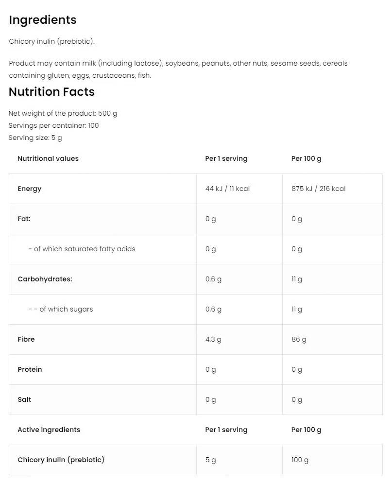 Το OstroVit Vege Inulin Powder είναι ένα φυσικό συμπλήρωμα διατροφής φυτικής προέλευσης, που περιέχει ινουλίνη από ρίζα κιχωρίου (chicory). Η ινουλίνη είναι ένας φυσικός πρεβιοτικός πολυσακχαρίτης, δηλαδή μια μορφή φυτικών ινών που τρέφει τα “καλά” βακτήρια του εντέρου και συμβάλλει στη σωστή λειτουργία του πεπτικού συστήματος.