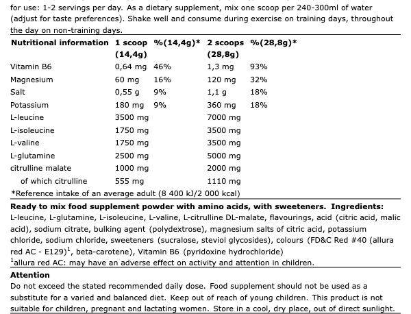 • Περιέχει BCAA 2:1:1 (L-Leucine, L-Isoleucine, L-Valine)